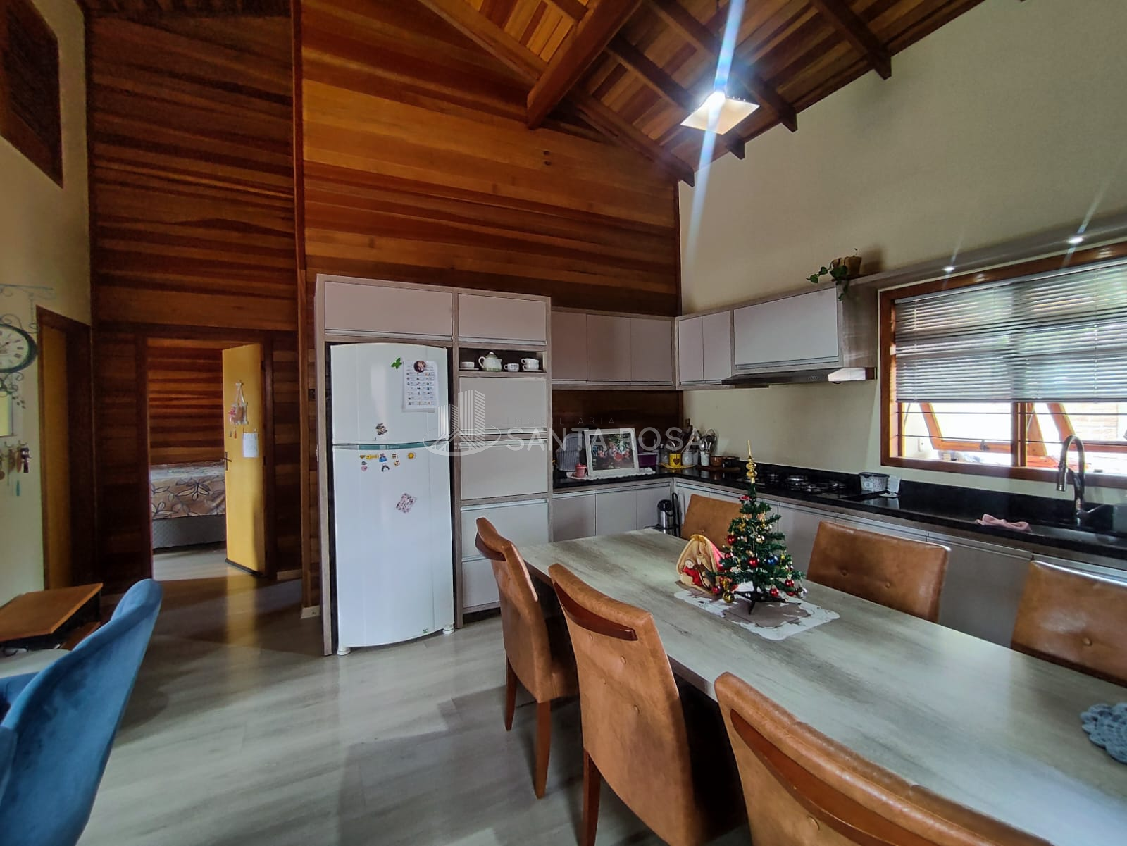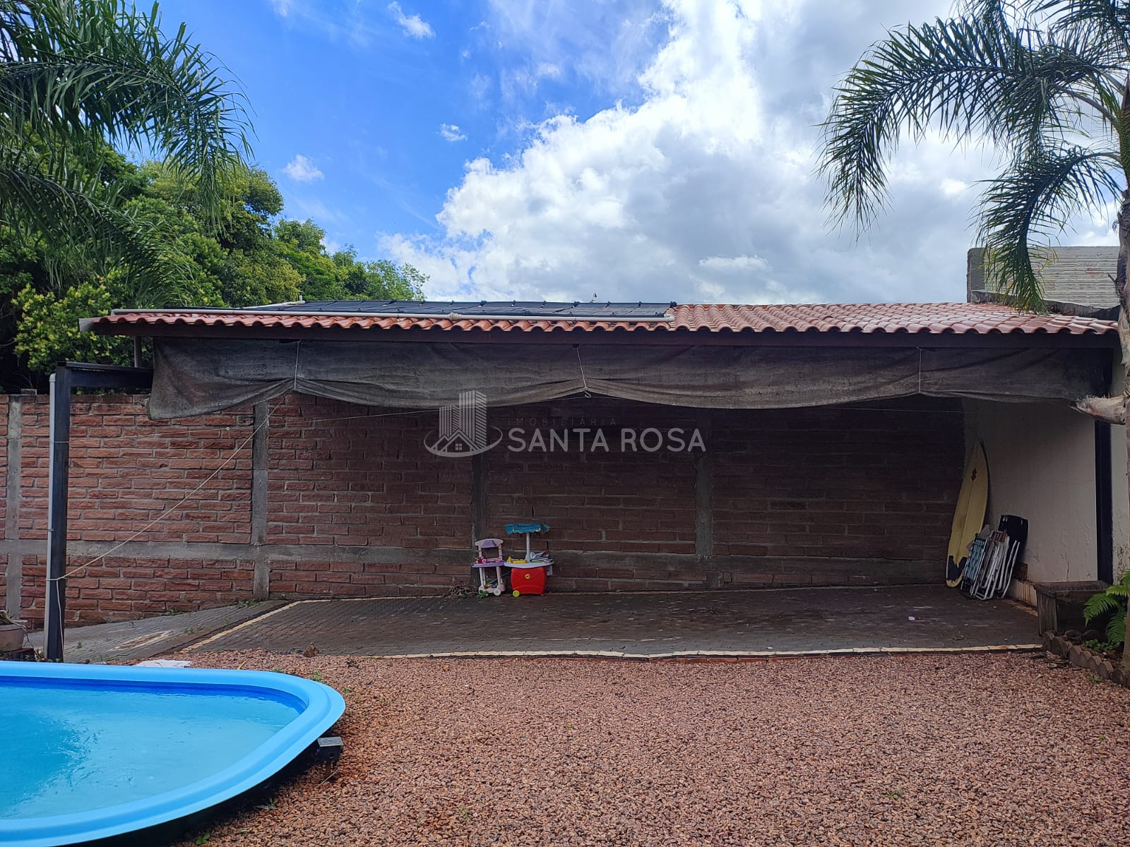 A casa possui 2 dormitórios, sala e cozinha em conceito aberto com pé direito alto, 2 banheiros, garagem coberta para 4 carros, pátio com piscina aquecida, churrasqueira e fogão campeiro.