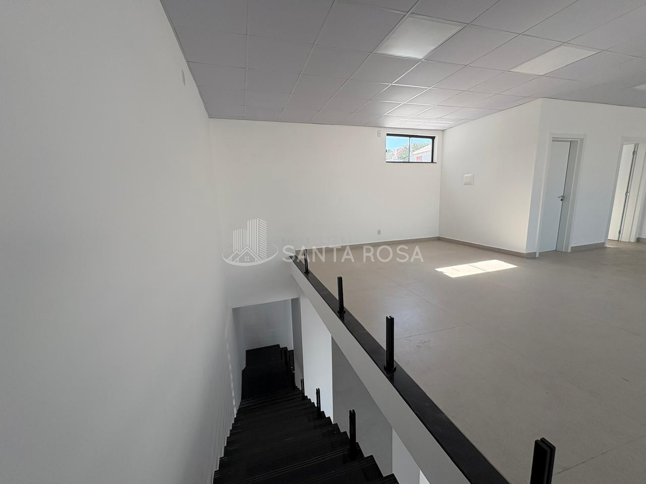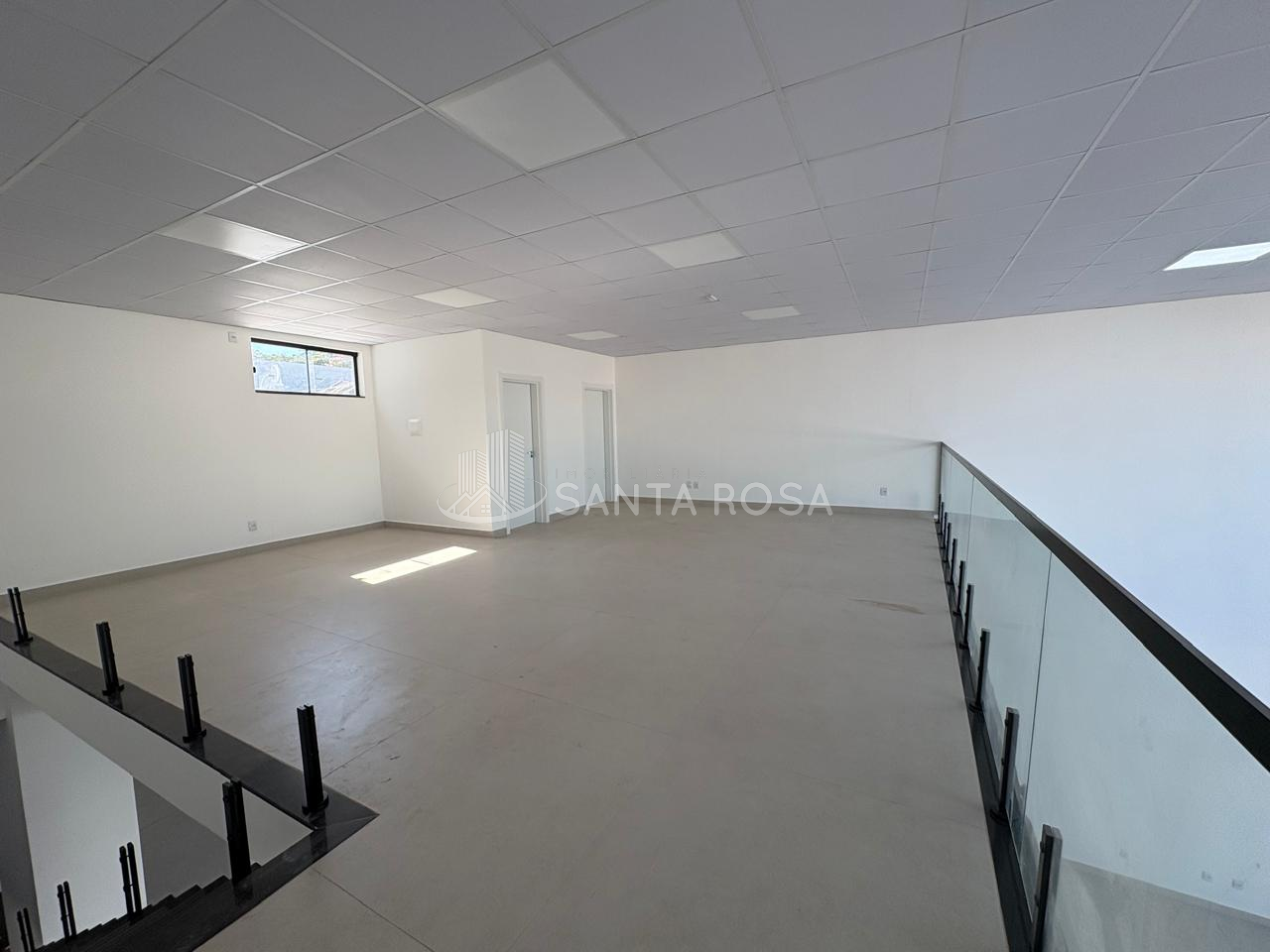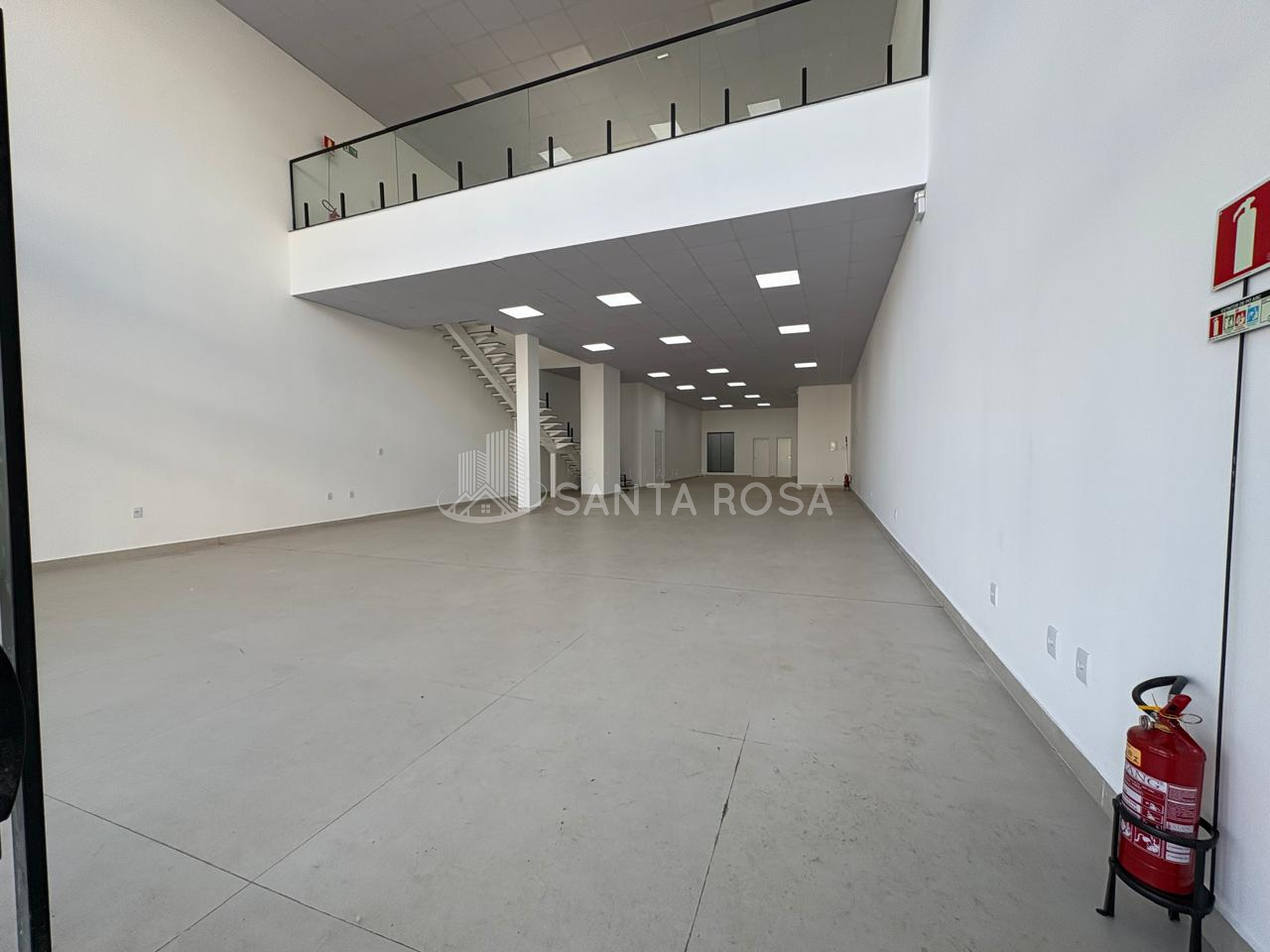 Mezanino Elegante: Área superior com guarda-corpo moderno, ideal para setor administrativo, salas de reunião privativas ou estoque VIP.